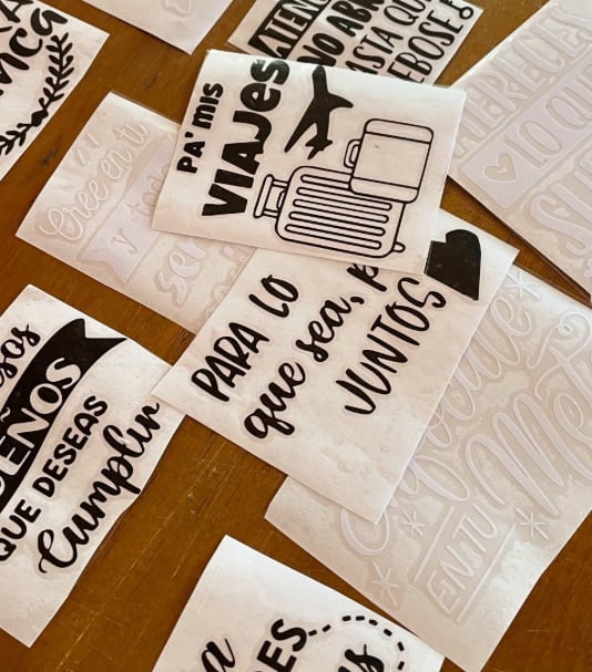 Troquelado de todas las dimensiones y colores disponibles de vinilos decorativos. Para pegar donde gustes.